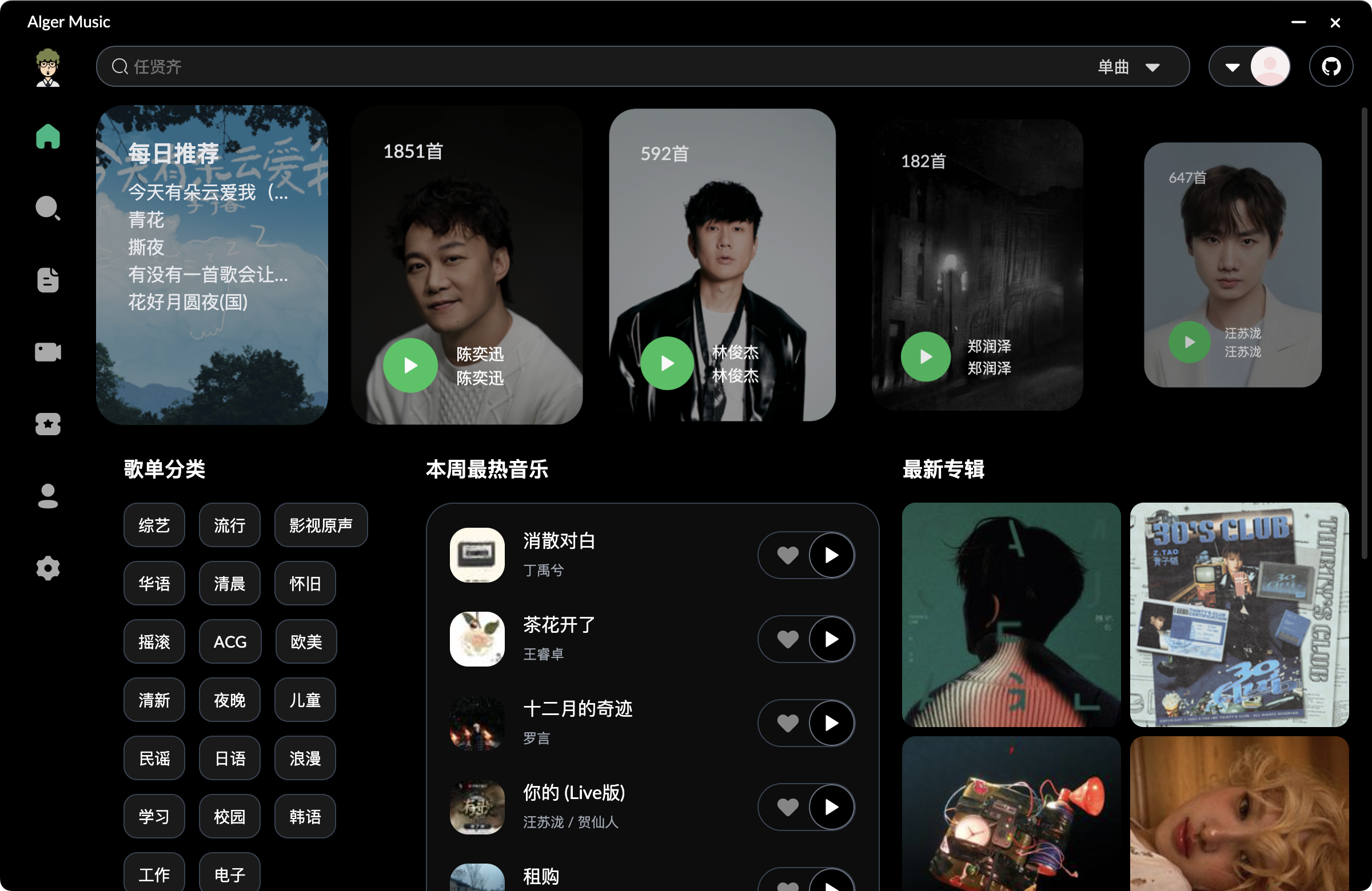 做为一个开源项目,Alger Music的更新、迭代速度还不错,可以多多关注下。